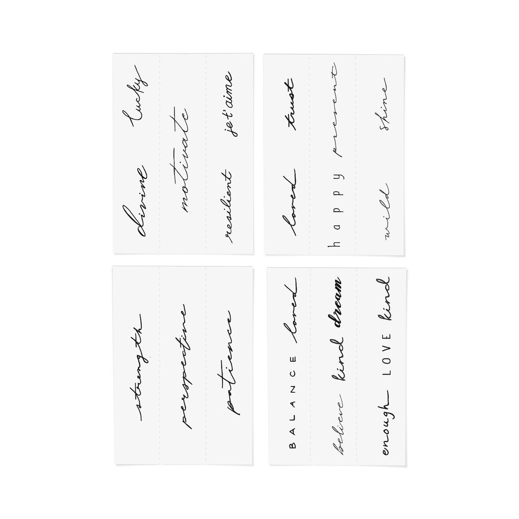 Whatever your mood is, say it with INKED. -EASY TO APPLY WITH JUST WATER -HAND-DRAWN DESIGNS -VEGAN INK -CRUELTY-FREE INK -NON-TOXIC INK -WATERPROOF INK -SIZES RANGE FROM ½ INCH TO 2 INCHES -MADE IN THE U.S.A. -LASTS A FEW DAYS UP TO 2 WEEKS